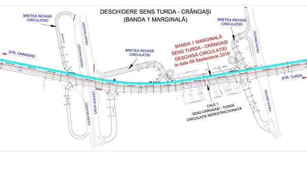 Pentru buna desfășurare a circulației rutiere în zona Podului Grant, și având în vedere începerea noului an școlar, începând cu data de 09 septembrie 2019, ora 06.00, se va da în circulație banda 1 (marginală) a Căii 2 a pasajului (sens Turda-Crângași), bretelele aferente acesteia rămânând închise.